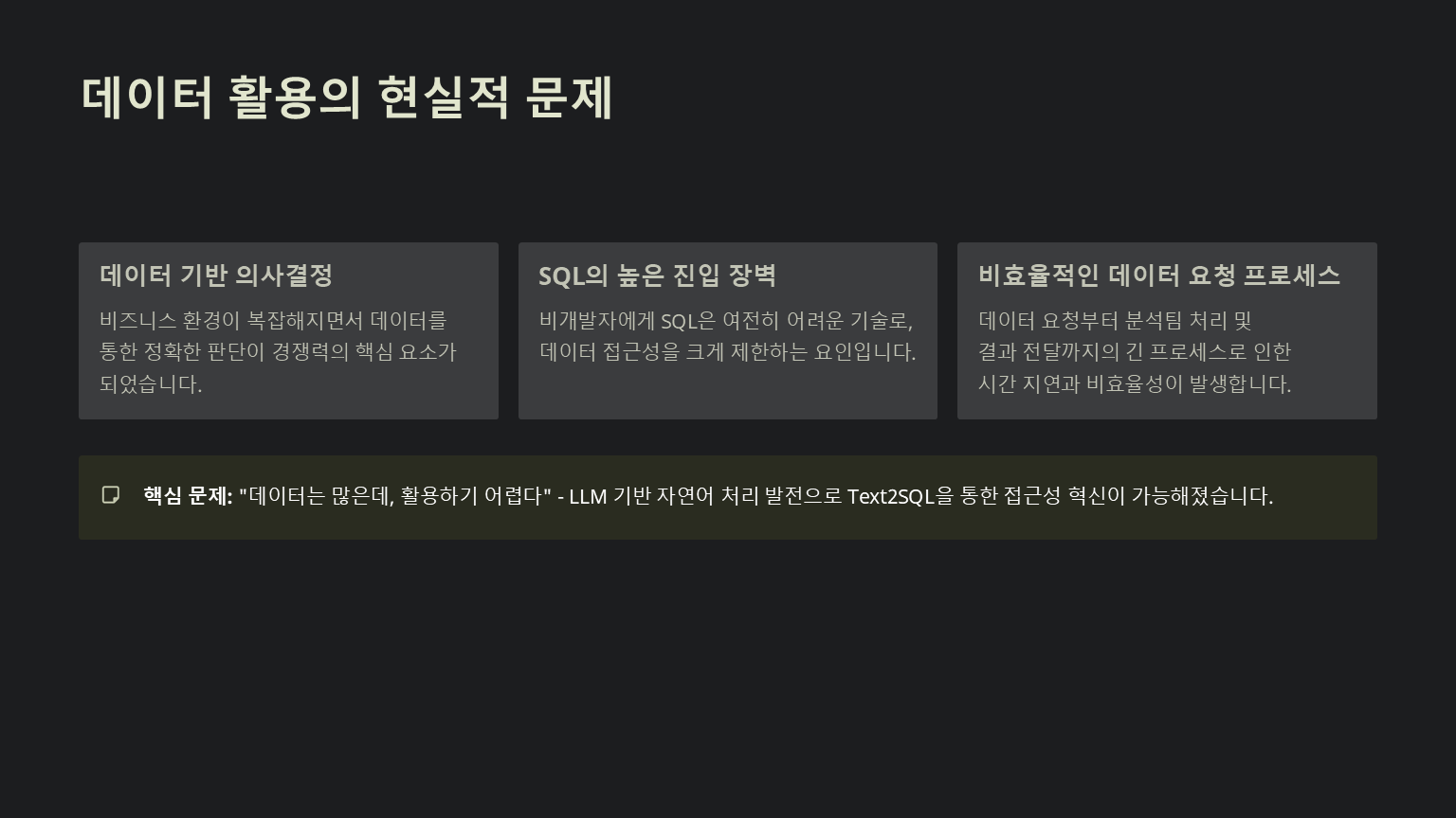 Text2SQL: 데이터 접근성의 미래와 도전 과제