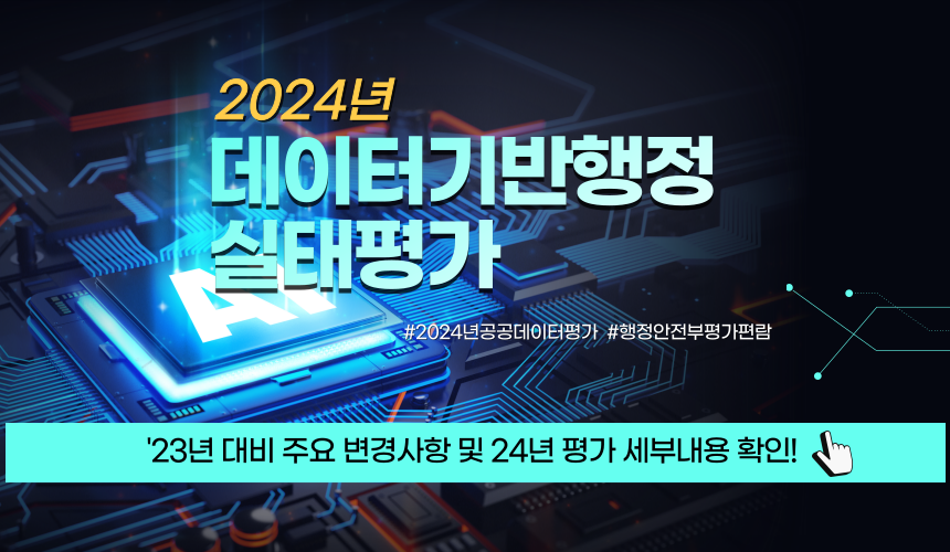 2024년 데이터기반행정 실태평가는 1. 분석·활용 영역, 2. 공유 영역, 3. 관리체계 영역으로 구분되며 주요 변경 사항은 다음과 같습니다.